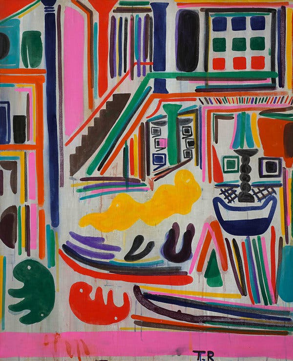 There are certain paintings, I keep coming back to. Danish artist, Tal R‘s paintings are like that –– you can’t just look at them once. Maybe it’s the riotous colour –– Fauvist in intensity –– or his subject matter –– city life as seen through a kaleidoscopic dream –– but his paintings are utterly captivating. This one here is a personal favourite, I could hang out with it all day.