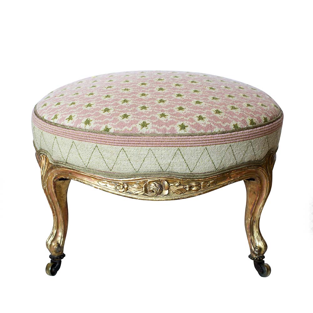 My great auntie Polyxene was a skilled needlepointer. I have two bottle green velvet cushions of hers, beautifully embroidered with flowers. If she was still alive, I might ask her to monogram me a pair of velvet slippers. Have a look at the work that Hunt & Hope do; cushions, headboards, poufs etc all hand-stitched with gorgeous and colourful needlepoint designs. This little footstool is utterly charming. Auntie P’s cushion would look grand with it.