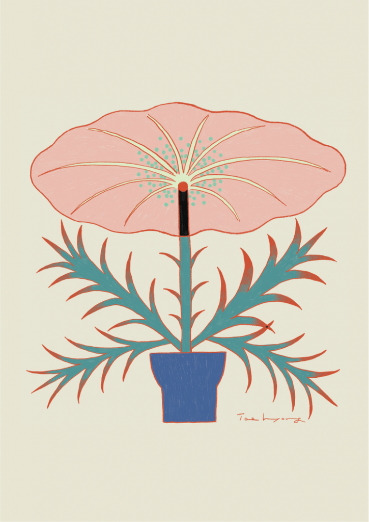 The potted plants in her Seoul apartment were the inspiration for Taehyoung Jeon‘s most recent body of work. “One of my joys is to look at my plants and study their growth and changes everyday,” she says. It’s always so exciting to see what happens when inspiration and imagination meet. Some plants are recognizable, while others spring entirely from Jeon’s imagination. Organic shapes and exaggerated proportions paired with playful colour combinations and decorative details make each plant so pleasing to the eye. I see antique gramophones and mid-century lamps. This one might be my favourite, although it’s just so hard to choose.