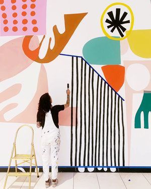 Ashley Mary‘s candy hued paintings –– think bold shapes in pinks, yellows and electric blues –– have such a cheerful vibe. How could this little print not bring zing to a room? Her murals, all over Minneapolis where the artist lives, are eye popping. She’s collaborated with several other artists –– fashion designers, jewellers, quilters –– bringing her signature style to a swimsuit, skateboard or socks. Her curiosity studio brings people together to paint, play and explore. Have a mosey. Buy some socks.
