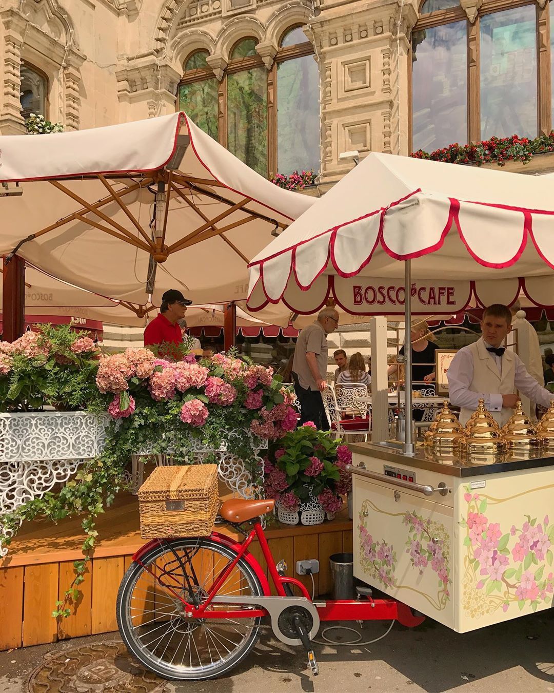 Good golly, I love the canopy over this ice cream vendour at Bosco Cafe in Moscow. I picture a giant one, wide open over a delightful terrazza of Mediterranean pots, a whimsical wrought iron garden set and wildly overgrown vines.