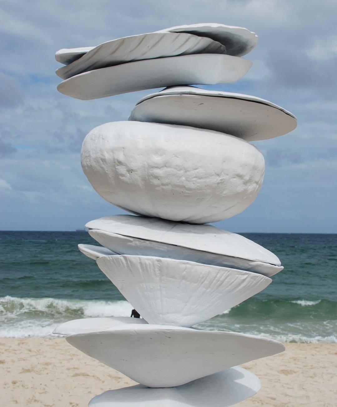 Evi Savvaidi‘s Sky is the Limit stopped me in my tracks this morning. Her enormous sculptures by the sea –– they’re on Cottesloe Beach, halfway between Perth and Fremantle –– are the most beautiful thing I’ve seen in a while. Context is everything, I understand, but what a wonderful experience it must be to walk around them.