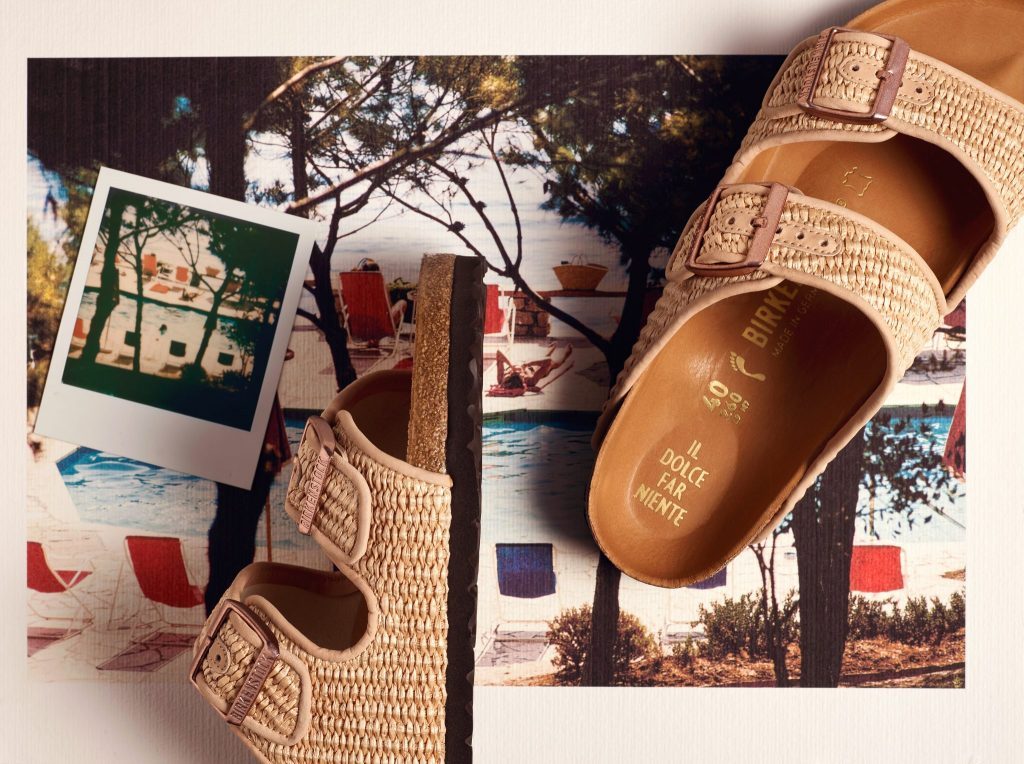 I bet all you old school Birks wearers find the new colours and textures ridiculous. Your trusty, brown sandals have been to Peru and back, four times, you don’t need a pair in hologram silver. I get it. I like the originals, too. That’s until I saw this collaboration with the iconic Pellicano hotel. I can’t deny, I like it. The natural rafia is lovely, and so’s the Arizona red satin. They’re not for Machu Picchu, but the Argentario Coast, Perché no.